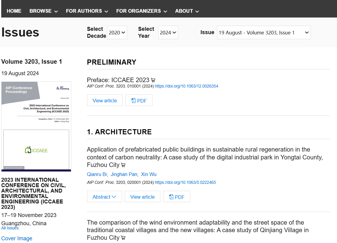 2023 International Conference on Civil, Architectural and Environmental Engineering (ICCAEE 2023) has been published by "AIP Conference Proceedings" (Online ISSN 1551-7616, Volume 3203, Issue 1) and indexed by Scopus and other major databases.